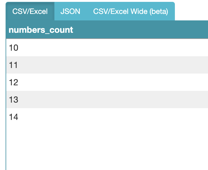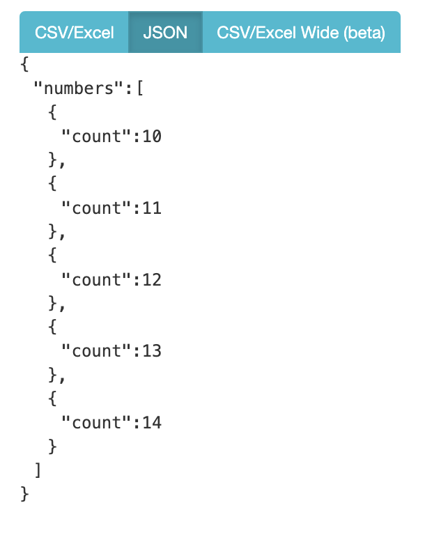 3. Your project should now loop through numbers incrementing them ending at the value of x in $createArray(x) from step 1. Your preview in JSON will look like this: