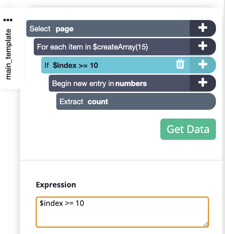 3. Click on "If 0" and change your condition (where it says "0") to "$index >= 10". You can replace 10 for any starting number.