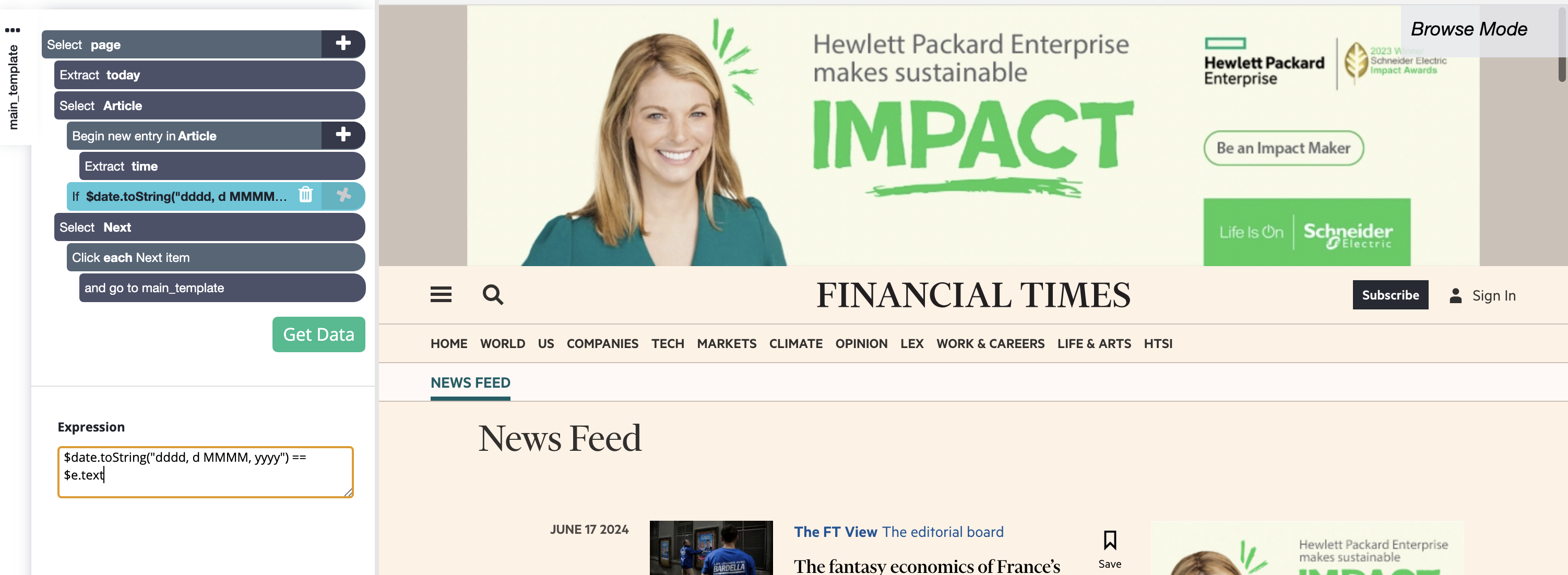 1. Open ParseHub and start a new project with the URL https://www.ft.com/news-feed