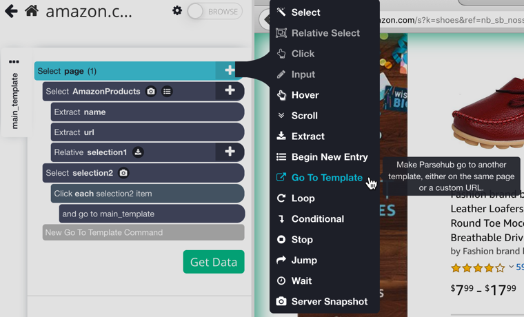Normally, commands can be expected to be executed in depth-first order. The go to template command is an exception to that rule. ParseHub makes it easy to create projects that span thousands or millions of pages. In order to ensure that your data is retrieved quickly, the workload needs to be split up among a fleet of servers.