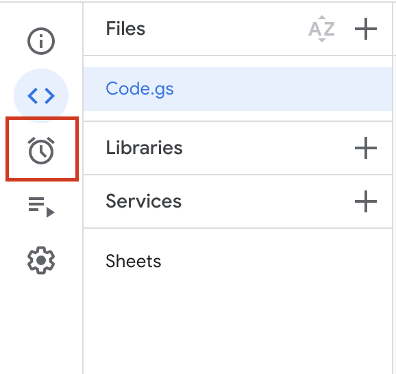 You will need to connect the script to your current Google sheet. To do this, you can click on the Services element located on the menu on the left-hand side under Libraries. A pop-up will appear and within the scrollable options choose Google Sheets API. Click on Add.