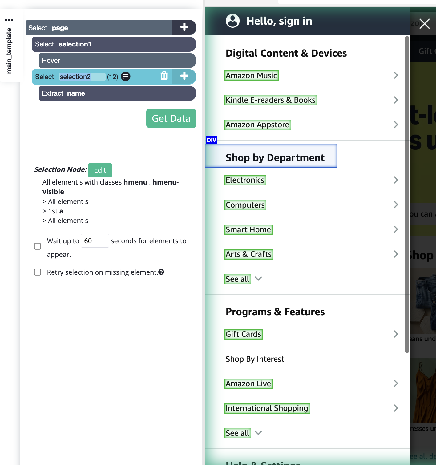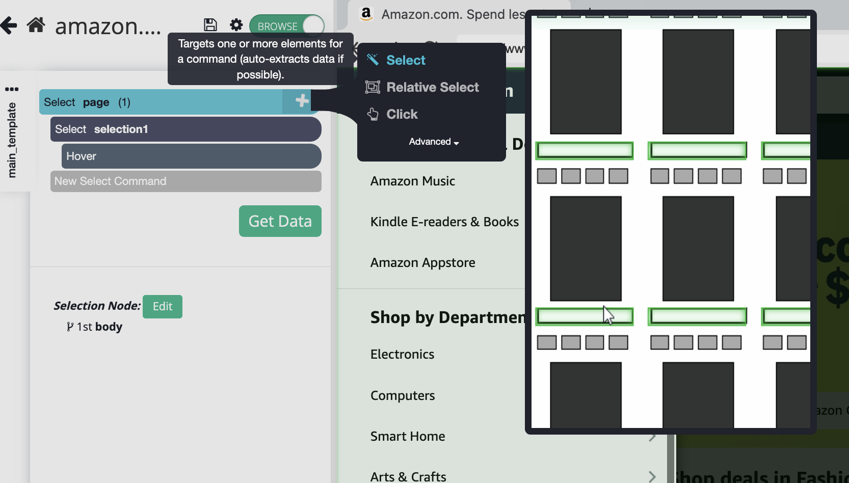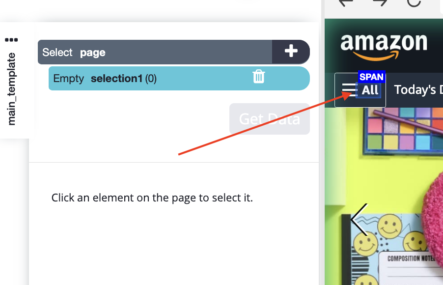 5. Click on the element that you want to scrape to select it after it's been hovered over by ParseHub.